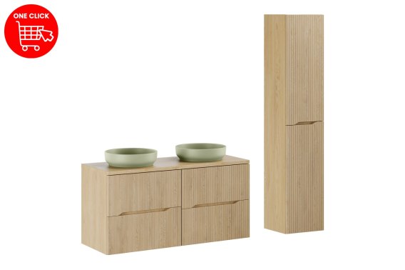 Zestaw meblowy 120cm z blatem, 2 umywalkami nablatowymi River i szafką wysoką